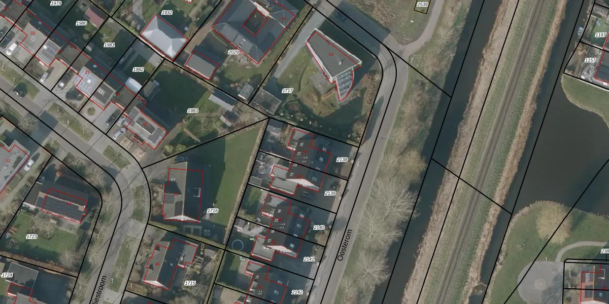 Het perceel waarop Oosterom 26 staat heeft een oppervlakte van 355 m². Dit is een groot perceel. De perceeloppervlakte wordt geregistreerd door het Kadaster. Gedetailleerde informatie over de maten van dit perceel kunt u vinden in het rapport Kadastrale kaart met maatvoering van Oosterom 26.