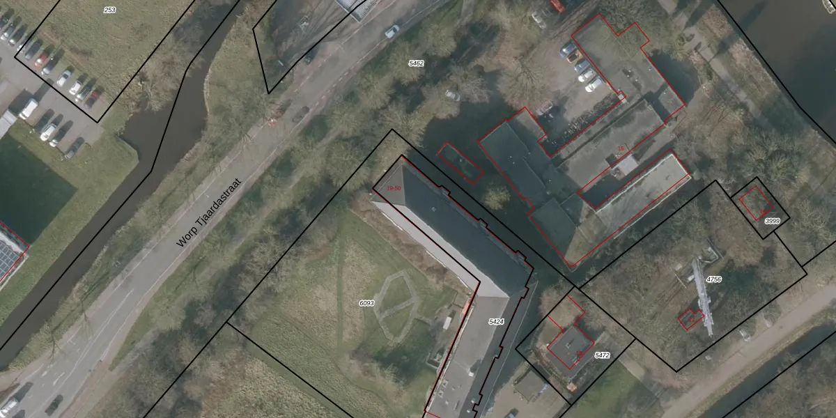 Het adres is gelegen op perceel 5424 in de sectie A en de kadastrale gemeente Sneek. De kadastrale aanduiding is aldus SNE00-A-5424. Het perceel is kleiner dan gemiddeld in Sneek. Het perceel is 835 m² groot, terwijl het gemiddelde ligt op 2095,43 m². De grootste perceeloppervlakte in de kadastrale gemeente is 61,3 ha. De kleinste oppervlakte bedraagt 0 m². Er zijn 32 adressen aanwezig op het perceel. De huidige grenzen van het perceel zijn digitaal in de Basisregistratie Kadaster (BRK) geregistreerd op 17-10-2006.