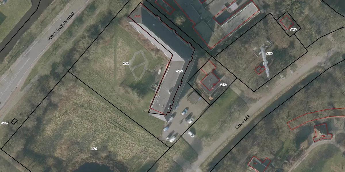 Het perceel waarop Oude Dijk 46 staat heeft een oppervlakte van 835 m². Dit is een groot perceel. De perceeloppervlakte wordt geregistreerd door het Kadaster. Gedetailleerde informatie over de maten van dit perceel kunt u vinden in het rapport Kadastrale kaart met maatvoering van Oude Dijk 46.
