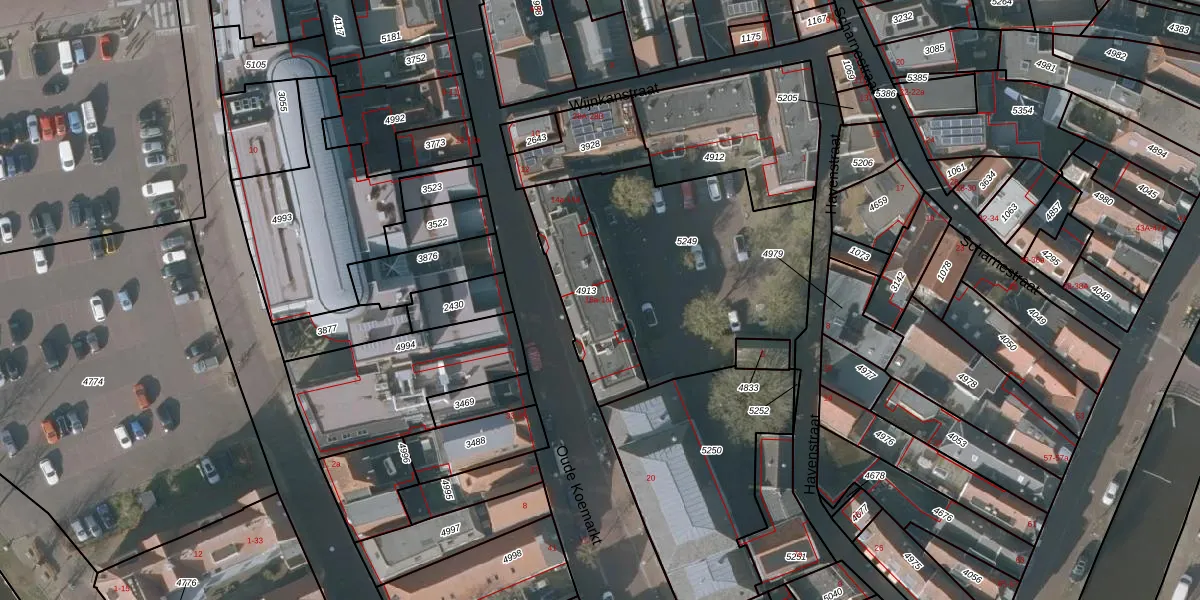 Het perceel waarop Oude Koemarkt 16-a staat heeft een oppervlakte van 343 m². Dit is een groot perceel. De perceeloppervlakte wordt geregistreerd door het Kadaster. Gedetailleerde informatie over de maten van dit perceel kunt u vinden in het rapport Kadastrale kaart met maatvoering van Oude Koemarkt 16-a.