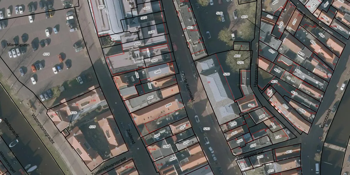 Oude Koemarkt 39-A is gelegen op kadastraal perceel SNE00B4997. Deze kadastrale aanduiding is uniek en wordt gebruikt door het Kadaster om eigendomsrechten en andere zakelijke rechten vast te leggen. Het perceel maakt onderdeel uit van de kadastrale gemeente Sneek.