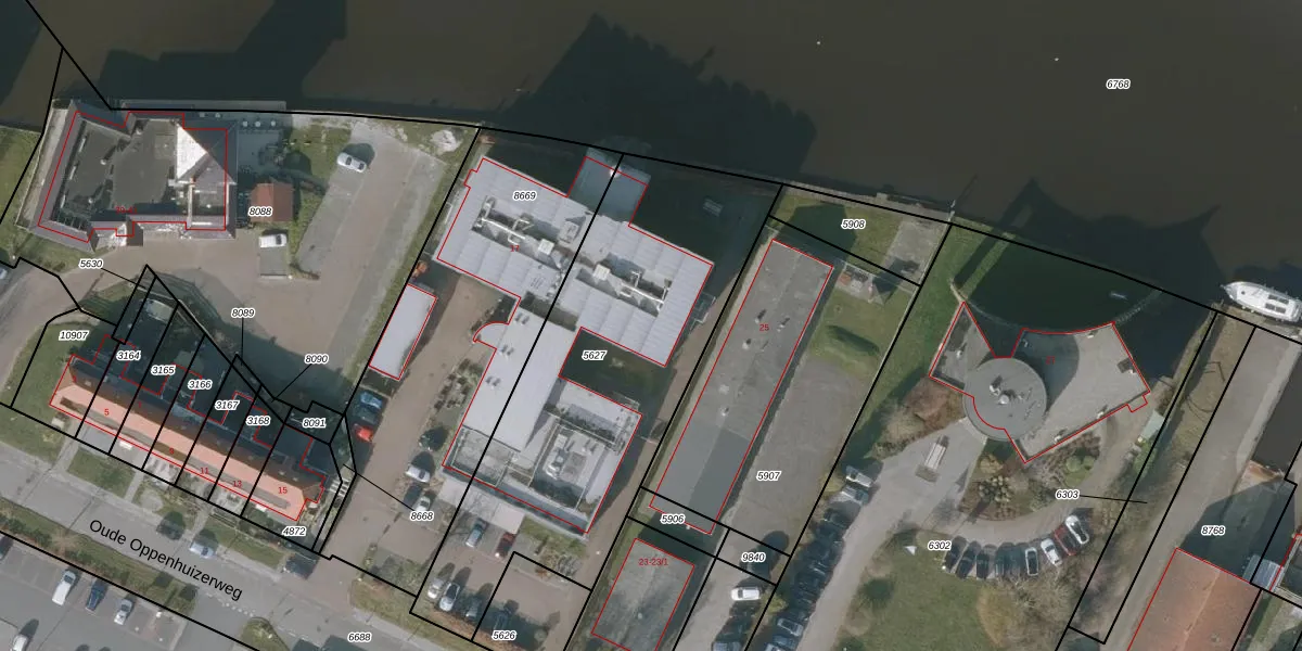 Het perceel waarop Oude Oppenhuizerweg 17-107 staat heeft een oppervlakte van 1733 m². Dit is een zeer groot perceel. De perceeloppervlakte wordt geregistreerd door het Kadaster. Gedetailleerde informatie over de maten van dit perceel kunt u vinden in het rapport Kadastrale kaart met maatvoering van Oude Oppenhuizerweg 17-107.