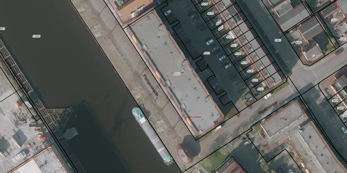 Pampuskade 17-101 is gelegen op kadastraal perceel SNE00D4552. Deze kadastrale aanduiding is uniek en wordt gebruikt door het Kadaster om eigendomsrechten en andere zakelijke rechten vast te leggen. Het perceel maakt onderdeel uit van de kadastrale gemeente Sneek.