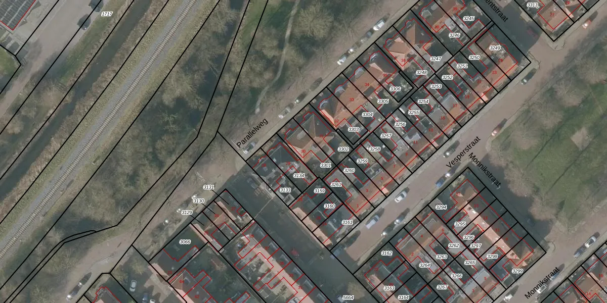 Parallelweg 30 is gelegen op kadastraal perceel SNE00A3301. Deze kadastrale aanduiding is uniek en wordt gebruikt door het Kadaster om eigendomsrechten en andere zakelijke rechten vast te leggen. Het perceel maakt onderdeel uit van de kadastrale gemeente Sneek.