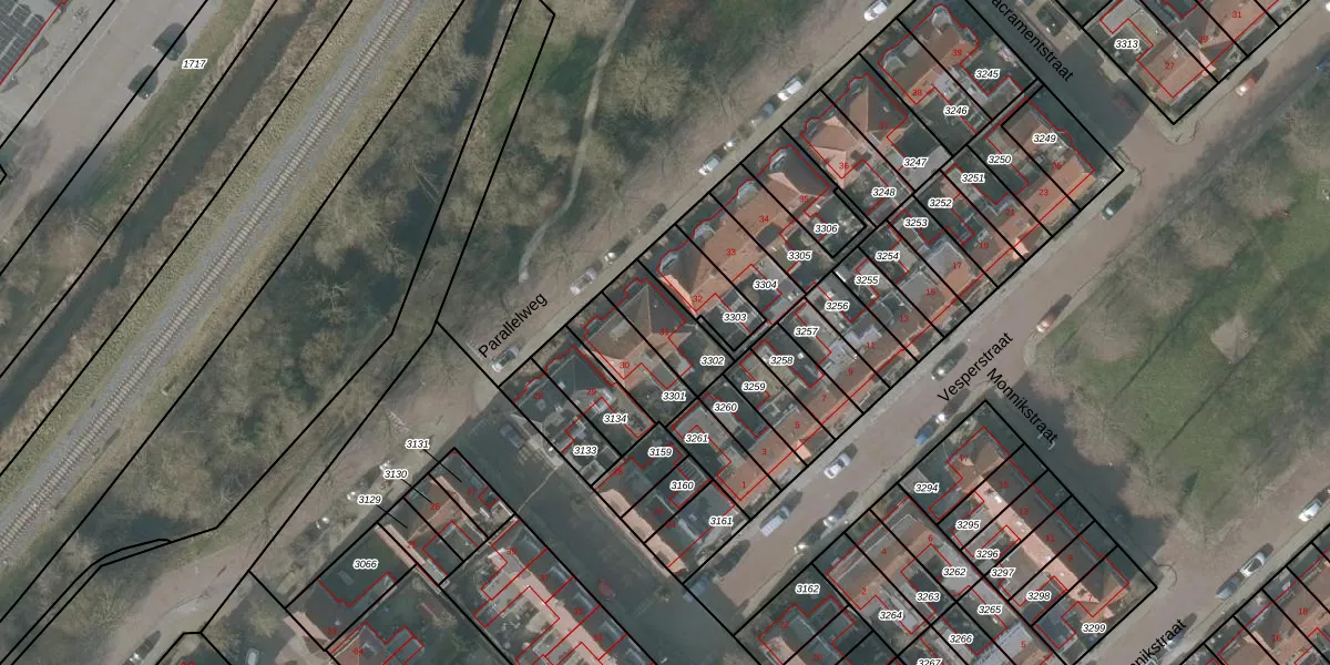 Parallelweg 31 is gelegen op kadastraal perceel SNE00A3302. Deze kadastrale aanduiding is uniek en wordt gebruikt door het Kadaster om eigendomsrechten en andere zakelijke rechten vast te leggen. Het perceel maakt onderdeel uit van de kadastrale gemeente Sneek.