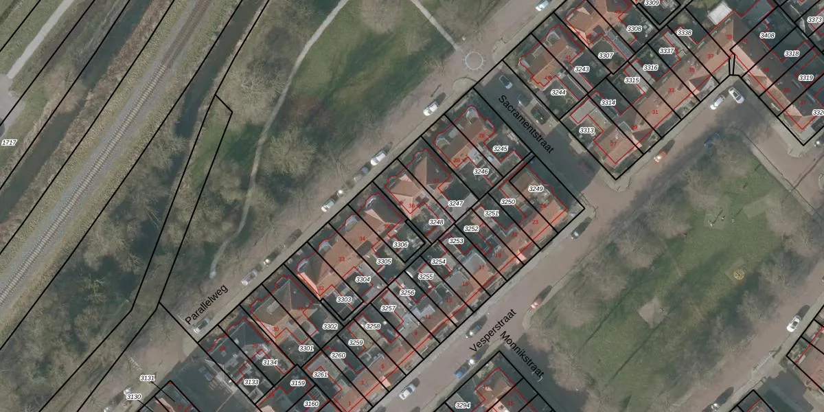 Parallelweg 36 is gelegen op kadastraal perceel SNE00A3248. Deze kadastrale aanduiding is uniek en wordt gebruikt door het Kadaster om eigendomsrechten en andere zakelijke rechten vast te leggen. Het perceel maakt onderdeel uit van de kadastrale gemeente Sneek.