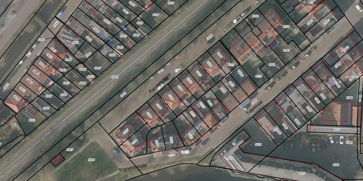 Parallelweg 4 is gelegen op kadastraal perceel SNE00A3103. Deze kadastrale aanduiding is uniek en wordt gebruikt door het Kadaster om eigendomsrechten en andere zakelijke rechten vast te leggen. Het perceel maakt onderdeel uit van de kadastrale gemeente Sneek.