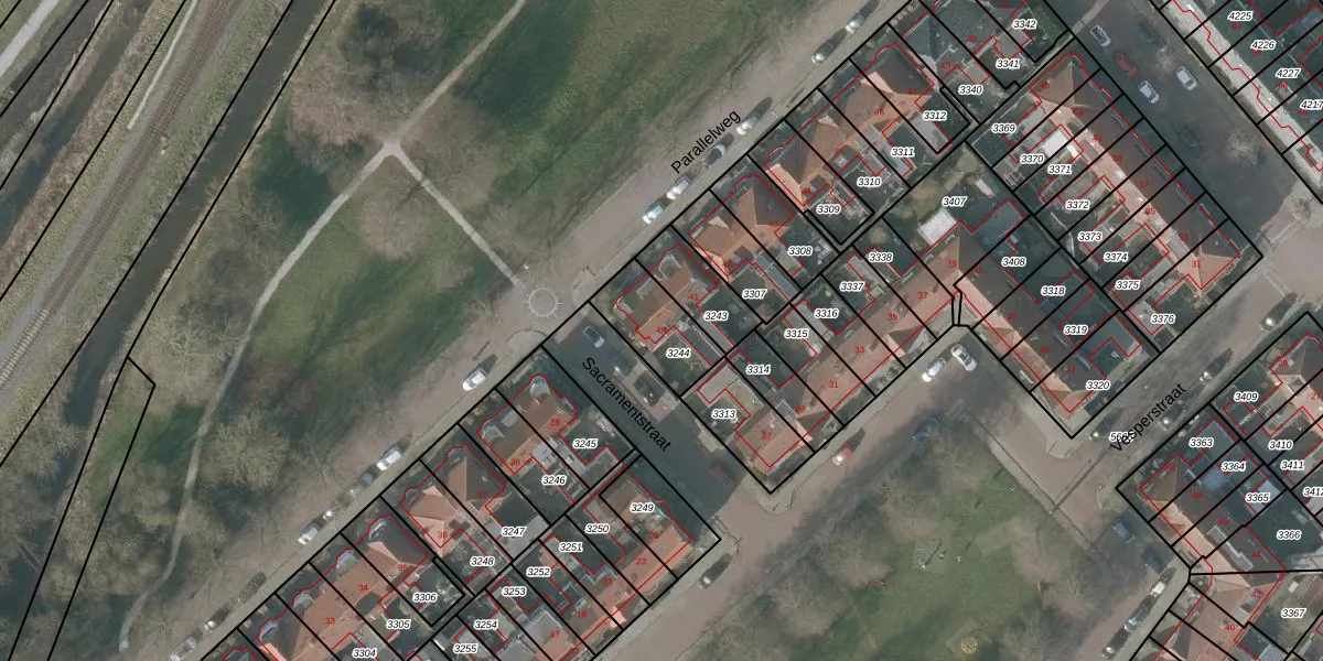 Parallelweg 40 is gelegen op kadastraal perceel SNE00A3244. Deze kadastrale aanduiding is uniek en wordt gebruikt door het Kadaster om eigendomsrechten en andere zakelijke rechten vast te leggen. Het perceel maakt onderdeel uit van de kadastrale gemeente Sneek.