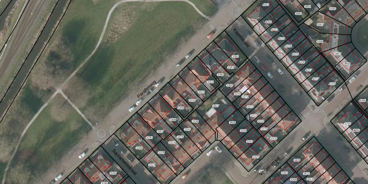 Parallelweg 45 is gelegen op kadastraal perceel SNE00A3310. Deze kadastrale aanduiding is uniek en wordt gebruikt door het Kadaster om eigendomsrechten en andere zakelijke rechten vast te leggen. Het perceel maakt onderdeel uit van de kadastrale gemeente Sneek.