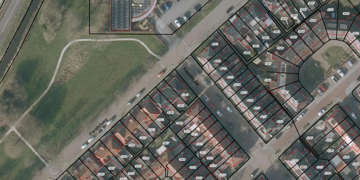 Parallelweg 50 is gelegen op kadastraal perceel SNE00A3342. Deze kadastrale aanduiding is uniek en wordt gebruikt door het Kadaster om eigendomsrechten en andere zakelijke rechten vast te leggen. Het perceel maakt onderdeel uit van de kadastrale gemeente Sneek.