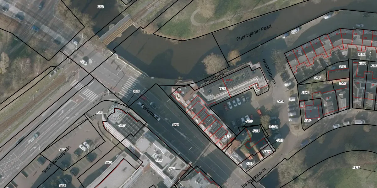 Parkstraat 34 is gelegen op kadastraal perceel SNE00A5674. Deze kadastrale aanduiding is uniek en wordt gebruikt door het Kadaster om eigendomsrechten en andere zakelijke rechten vast te leggen. Het perceel maakt onderdeel uit van de kadastrale gemeente Sneek.