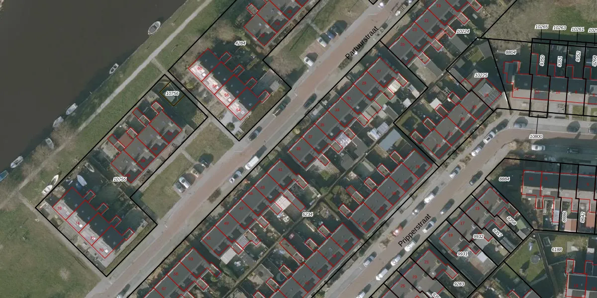 Het perceel waarop Partuurstraat 39 staat heeft een oppervlakte van 5975 m². Dit is een zeer groot perceel. De perceeloppervlakte wordt geregistreerd door het Kadaster. Gedetailleerde informatie over de maten van dit perceel kunt u vinden in het rapport Kadastrale kaart met maatvoering van Partuurstraat 39.