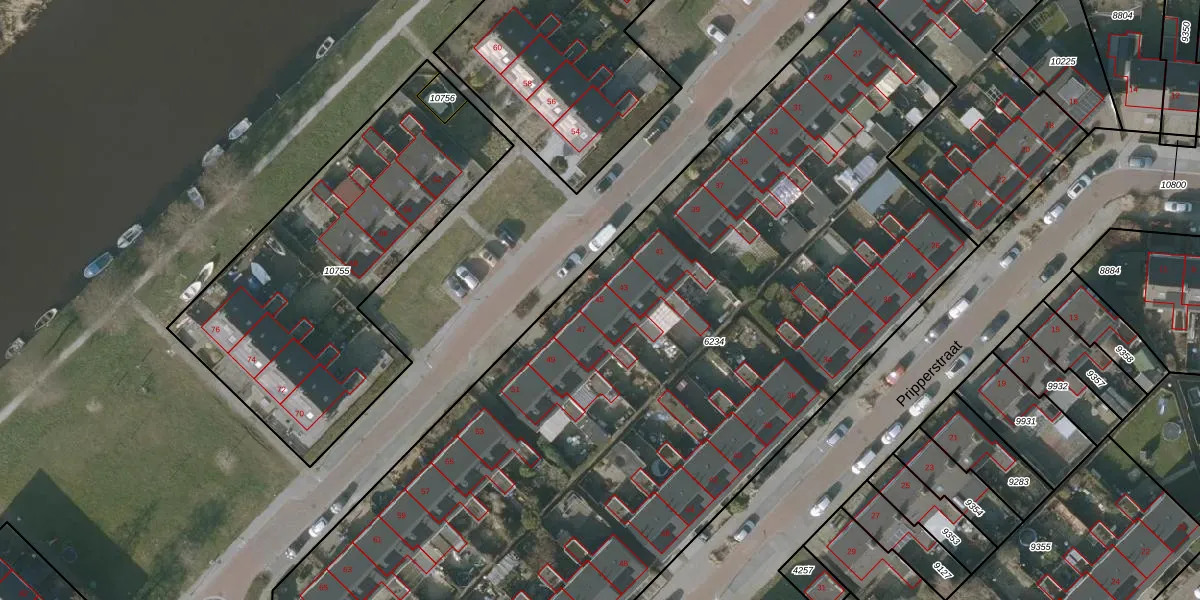 Het perceel waarop Partuurstraat 45 staat heeft een oppervlakte van 5975 m². Dit is een zeer groot perceel. De perceeloppervlakte wordt geregistreerd door het Kadaster. Gedetailleerde informatie over de maten van dit perceel kunt u vinden in het rapport Kadastrale kaart met maatvoering van Partuurstraat 45.