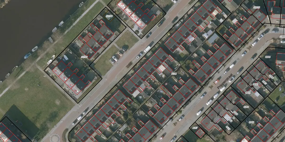 Het perceel waarop Partuurstraat 47 staat heeft een oppervlakte van 5975 m². Dit is een zeer groot perceel. De perceeloppervlakte wordt geregistreerd door het Kadaster. Gedetailleerde informatie over de maten van dit perceel kunt u vinden in het rapport Kadastrale kaart met maatvoering van Partuurstraat 47.