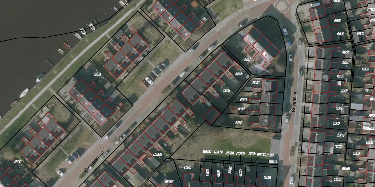 Partuurstraat 9 is gelegen op kadastraal perceel SNE00C10224. Deze kadastrale aanduiding is uniek en wordt gebruikt door het Kadaster om eigendomsrechten en andere zakelijke rechten vast te leggen. Het perceel maakt onderdeel uit van de kadastrale gemeente Sneek.