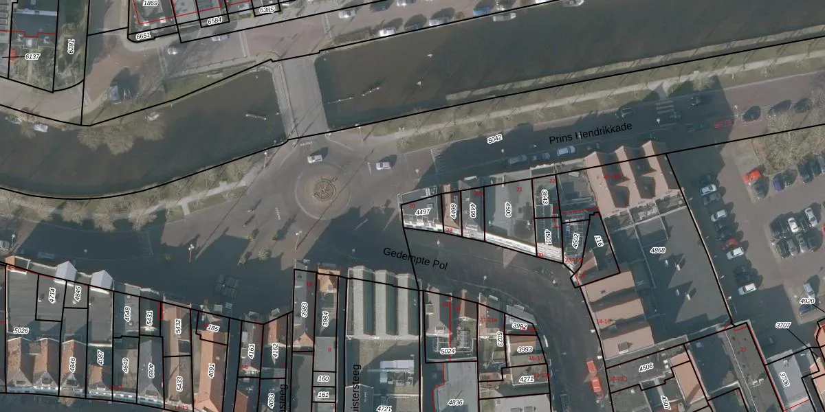 Prins Hendrikkade 20 is gelegen op kadastraal perceel SNE00B4497. Deze kadastrale aanduiding is uniek en wordt gebruikt door het Kadaster om eigendomsrechten en andere zakelijke rechten vast te leggen. Het perceel maakt onderdeel uit van de kadastrale gemeente Sneek.