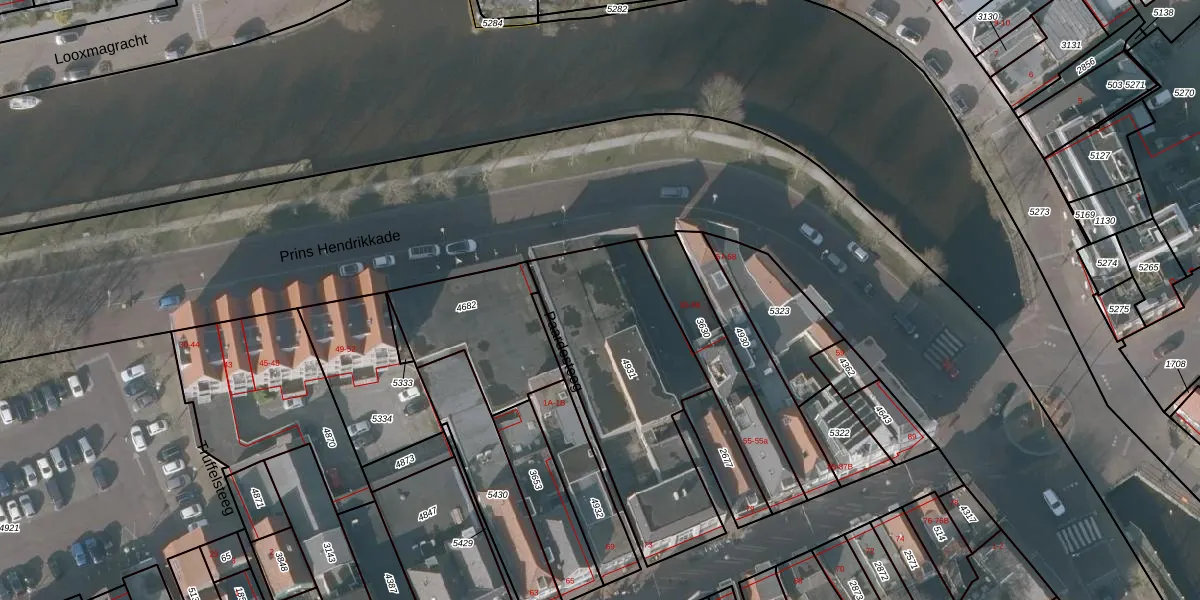 Prins Hendrikkade 54-104 is gelegen op kadastraal perceel SNE00B4931. Deze kadastrale aanduiding is uniek en wordt gebruikt door het Kadaster om eigendomsrechten en andere zakelijke rechten vast te leggen. Het perceel maakt onderdeel uit van de kadastrale gemeente Sneek.