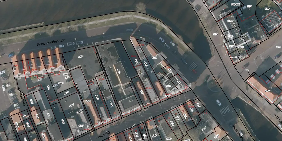 Prins Hendrikkade 55-a is gelegen op kadastraal perceel SNE00B3630. Deze kadastrale aanduiding is uniek en wordt gebruikt door het Kadaster om eigendomsrechten en andere zakelijke rechten vast te leggen. Het perceel maakt onderdeel uit van de kadastrale gemeente Sneek.
