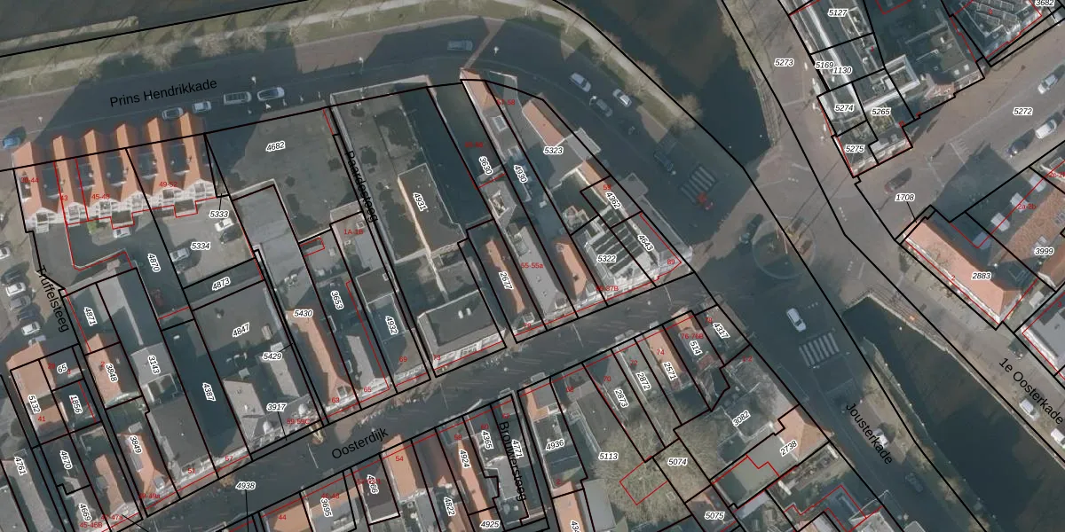 Prins Hendrikkade 55 is gelegen op kadastraal perceel SNE00B3630. Deze kadastrale aanduiding is uniek en wordt gebruikt door het Kadaster om eigendomsrechten en andere zakelijke rechten vast te leggen. Het perceel maakt onderdeel uit van de kadastrale gemeente Sneek.