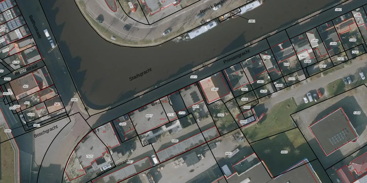 Prinsengracht 9 is gelegen op kadastraal perceel SNE00C6691. Deze kadastrale aanduiding is uniek en wordt gebruikt door het Kadaster om eigendomsrechten en andere zakelijke rechten vast te leggen. Het perceel maakt onderdeel uit van de kadastrale gemeente Sneek.