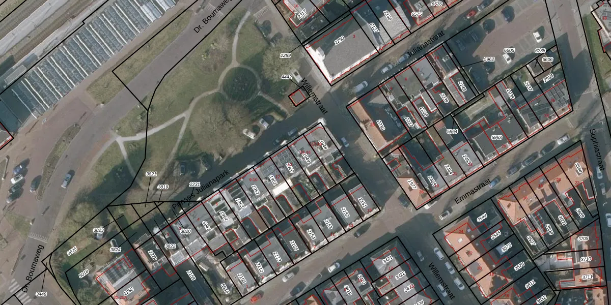 Prinses Julianapark 15 is gelegen op kadastraal perceel SNE00A1949. Deze kadastrale aanduiding is uniek en wordt gebruikt door het Kadaster om eigendomsrechten en andere zakelijke rechten vast te leggen. Het perceel maakt onderdeel uit van de kadastrale gemeente Sneek.