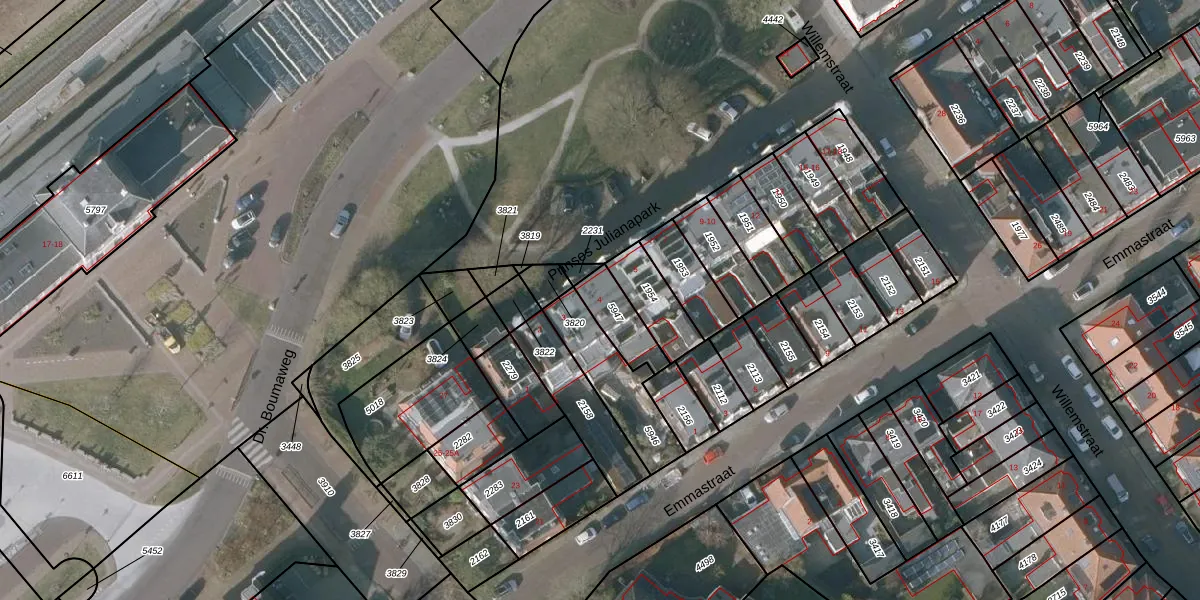 Het perceel waarop Prinses Julianapark 4 staat heeft een oppervlakte van 112 m². Dit is een middelgroot perceel. De perceeloppervlakte wordt geregistreerd door het Kadaster. Gedetailleerde informatie over de maten van dit perceel kunt u vinden in het rapport Kadastrale kaart met maatvoering van Prinses Julianapark 4.