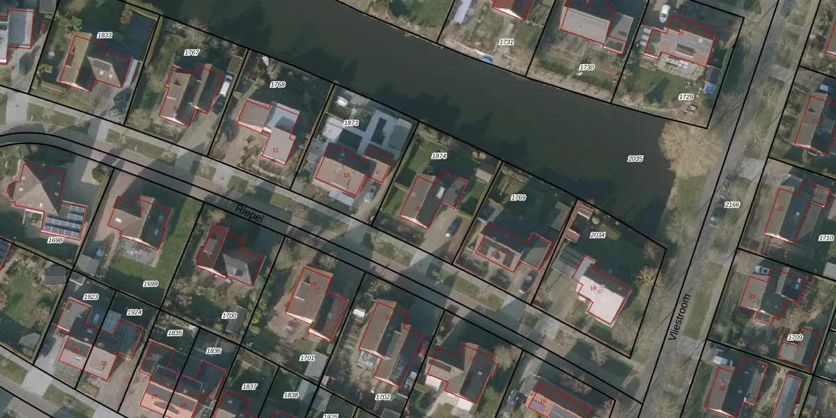 Riepel 15 is gelegen op kadastraal perceel SNE00E1874. Deze kadastrale aanduiding is uniek en wordt gebruikt door het Kadaster om eigendomsrechten en andere zakelijke rechten vast te leggen. Het perceel maakt onderdeel uit van de kadastrale gemeente Sneek.