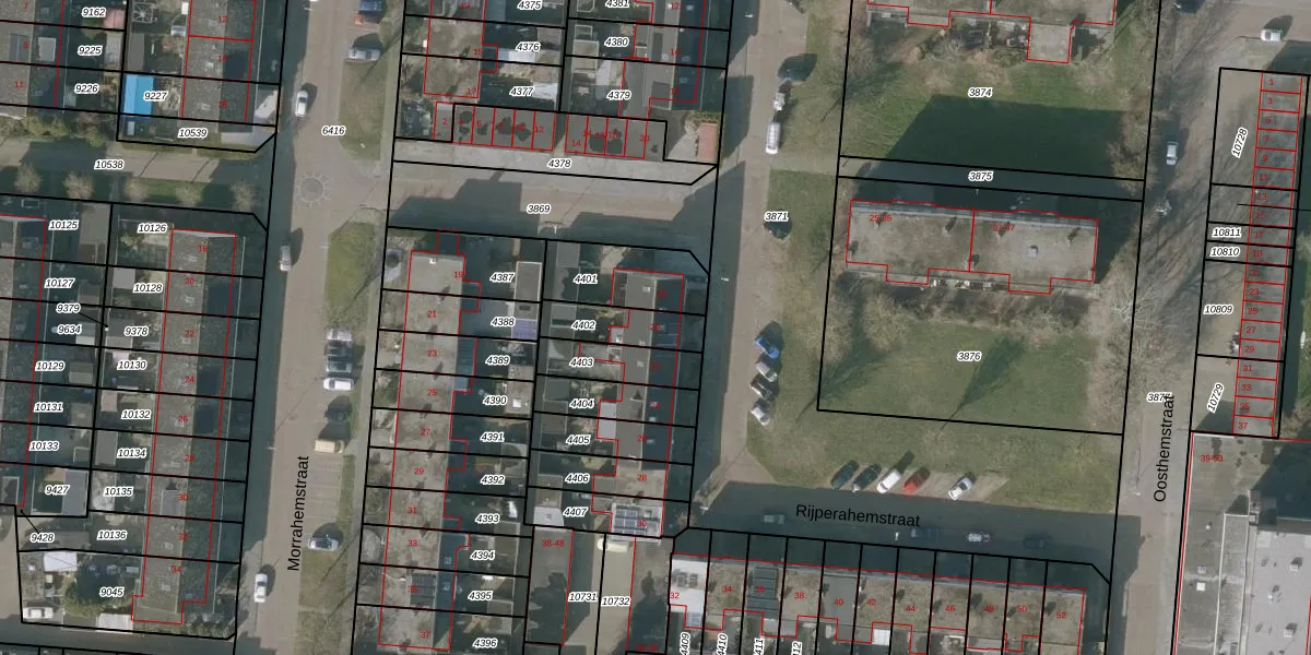 Gebruik de zoekbalk of klik op een perceel voor informatie over de adressen binnen dit perceel.