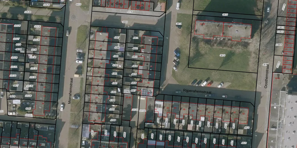 Gebruik de zoekbalk of klik op een perceel voor informatie over de adressen binnen dit perceel.