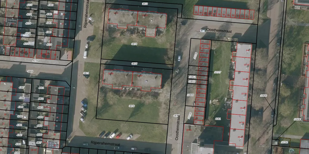 Rijperahemstraat 43 is gelegen op kadastraal perceel SNE00C3876. Deze kadastrale aanduiding is uniek en wordt gebruikt door het Kadaster om eigendomsrechten en andere zakelijke rechten vast te leggen. Het perceel maakt onderdeel uit van de kadastrale gemeente Sneek.