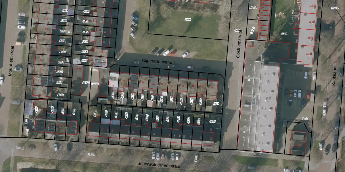Gebruik de zoekbalk of klik op een perceel voor informatie over de adressen binnen dit perceel.