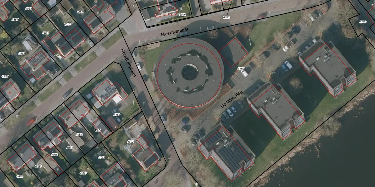 Roerdomplaan 1-102 is gelegen op kadastraal perceel SNE00A5785. Deze kadastrale aanduiding is uniek en wordt gebruikt door het Kadaster om eigendomsrechten en andere zakelijke rechten vast te leggen. Het perceel maakt onderdeel uit van de kadastrale gemeente Sneek.