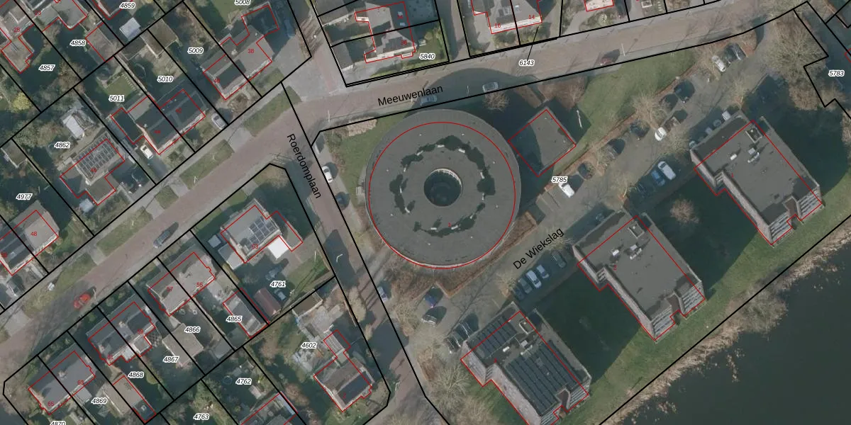 Het perceel waarop Roerdomplaan 1-009 staat heeft een oppervlakte van 8370 m². Dit is een zeer groot perceel. De perceeloppervlakte wordt geregistreerd door het Kadaster. Gedetailleerde informatie over de maten van dit perceel kunt u vinden in het rapport Kadastrale kaart met maatvoering van Roerdomplaan 1-009.