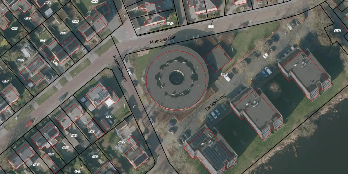 Het perceel waarop Roerdomplaan 1-008 staat heeft een oppervlakte van 8370 m². Dit is een zeer groot perceel. De perceeloppervlakte wordt geregistreerd door het Kadaster. Gedetailleerde informatie over de maten van dit perceel kunt u vinden in het rapport Kadastrale kaart met maatvoering van Roerdomplaan 1-008.