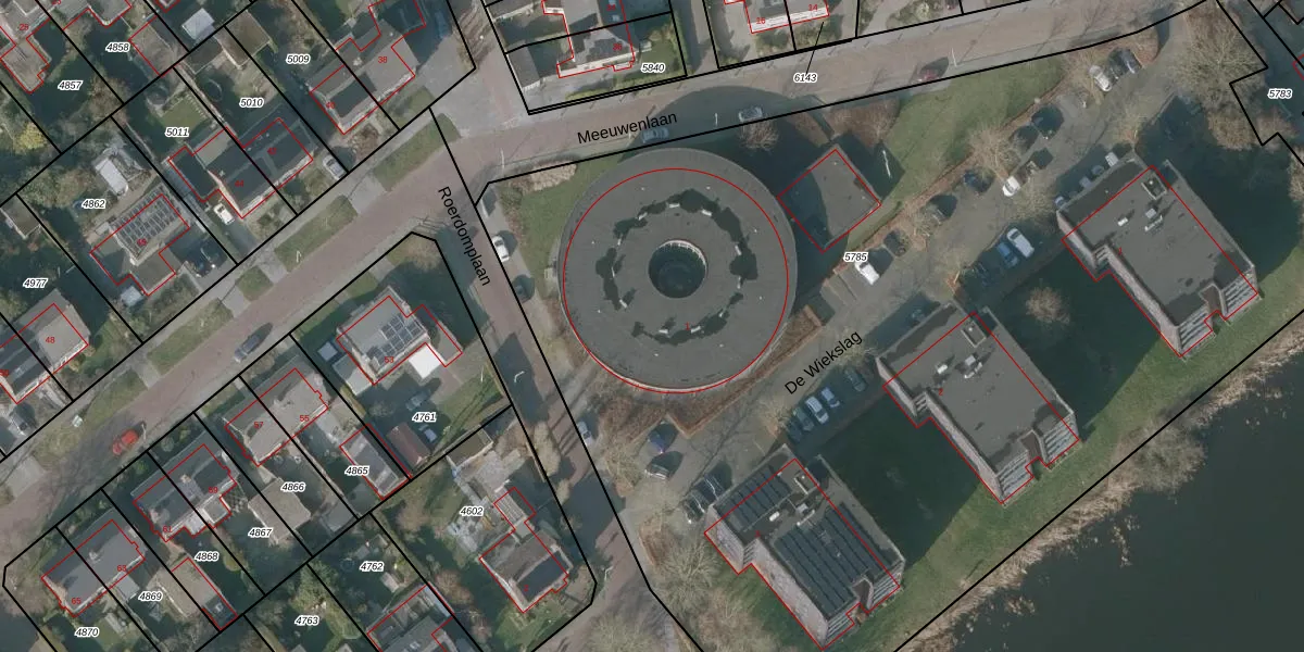 Het perceel waarop Roerdomplaan 1-004 staat heeft een oppervlakte van 8370 m². Dit is een zeer groot perceel. De perceeloppervlakte wordt geregistreerd door het Kadaster. Gedetailleerde informatie over de maten van dit perceel kunt u vinden in het rapport Kadastrale kaart met maatvoering van Roerdomplaan 1-004.