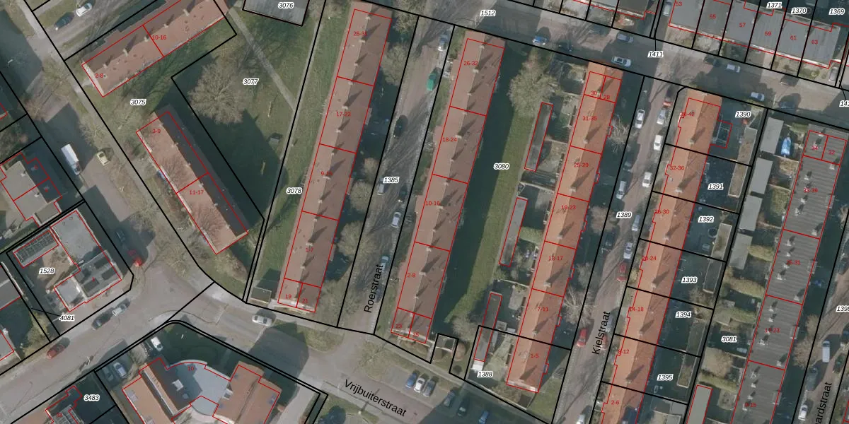 Roerstraat 16 is gelegen op kadastraal perceel SNE00D3080. Deze kadastrale aanduiding is uniek en wordt gebruikt door het Kadaster om eigendomsrechten en andere zakelijke rechten vast te leggen. Het perceel maakt onderdeel uit van de kadastrale gemeente Sneek.