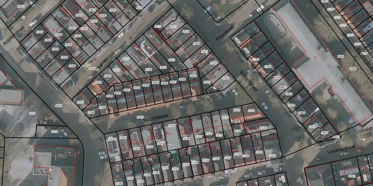Gebruik de zoekbalk of klik op een perceel voor informatie over de adressen binnen dit perceel.