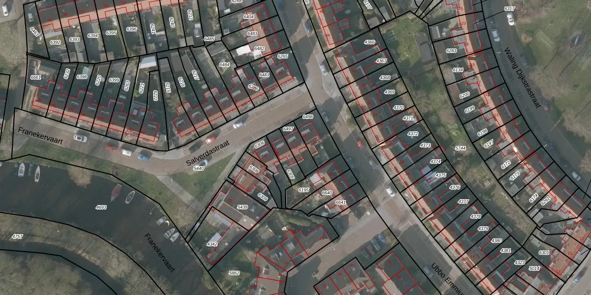Salverdastraat 10 is gelegen op kadastraal perceel SNE00A6497. Deze kadastrale aanduiding is uniek en wordt gebruikt door het Kadaster om eigendomsrechten en andere zakelijke rechten vast te leggen. Het perceel maakt onderdeel uit van de kadastrale gemeente Sneek.