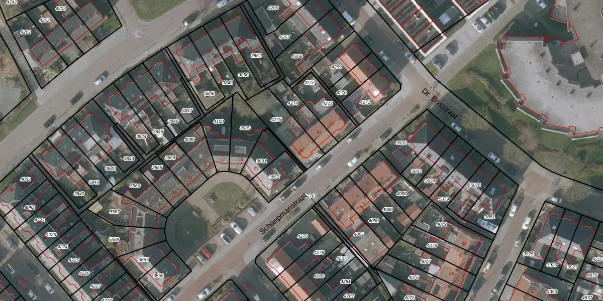 Schaepmanstraat 25 is gelegen op kadastraal perceel SNE00A4275. Deze kadastrale aanduiding is uniek en wordt gebruikt door het Kadaster om eigendomsrechten en andere zakelijke rechten vast te leggen. Het perceel maakt onderdeel uit van de kadastrale gemeente Sneek.