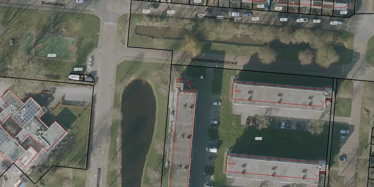 Het perceel waarop Scherwolderhemstraat 27 staat heeft een oppervlakte van 8634 m². Dit is een zeer groot perceel. De perceeloppervlakte wordt geregistreerd door het Kadaster. Gedetailleerde informatie over de maten van dit perceel kunt u vinden in het rapport Kadastrale kaart met maatvoering van Scherwolderhemstraat 27.