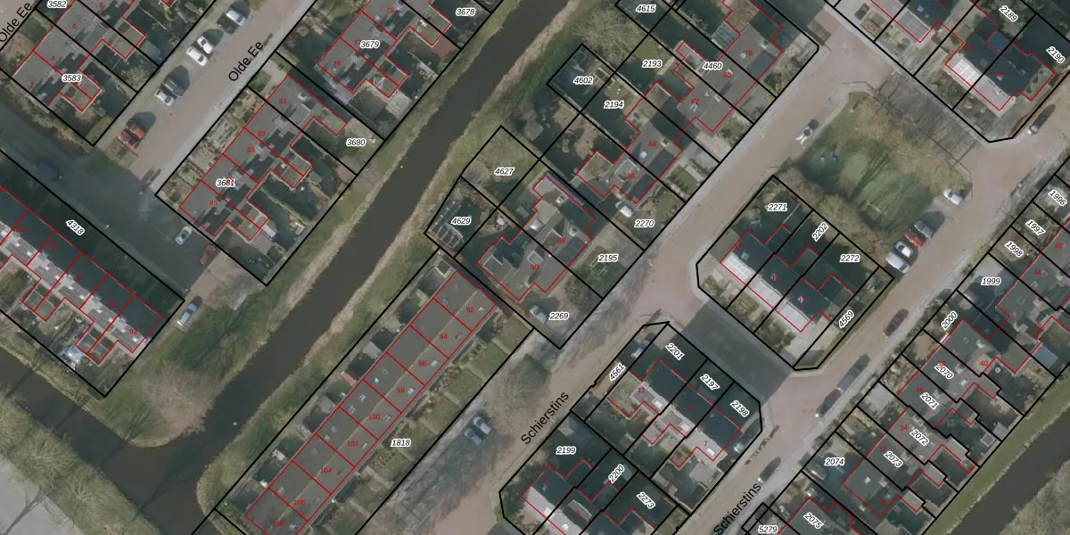 Schierstins 90 is gelegen op kadastraal perceel SNE00D2269. Deze kadastrale aanduiding is uniek en wordt gebruikt door het Kadaster om eigendomsrechten en andere zakelijke rechten vast te leggen. Het perceel maakt onderdeel uit van de kadastrale gemeente Sneek.
