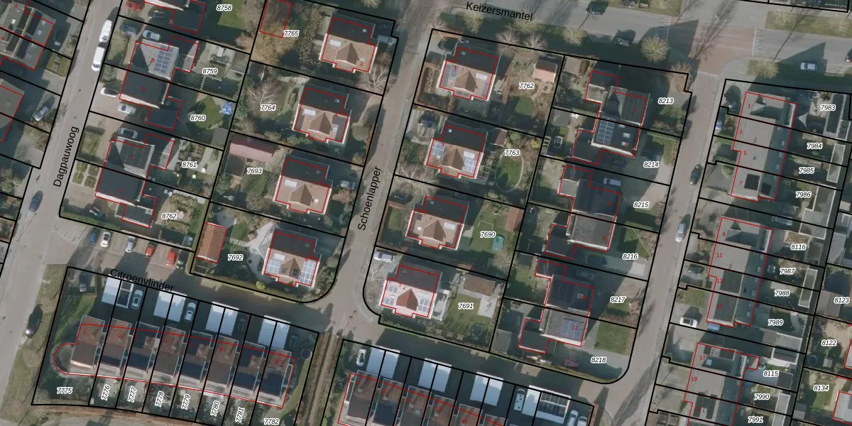 Het perceel waarop Schoenlapper 5 staat heeft een oppervlakte van 553 m². Dit is een groot perceel. De perceeloppervlakte wordt geregistreerd door het Kadaster. Gedetailleerde informatie over de maten van dit perceel kunt u vinden in het rapport Kadastrale kaart met maatvoering van Schoenlapper 5.