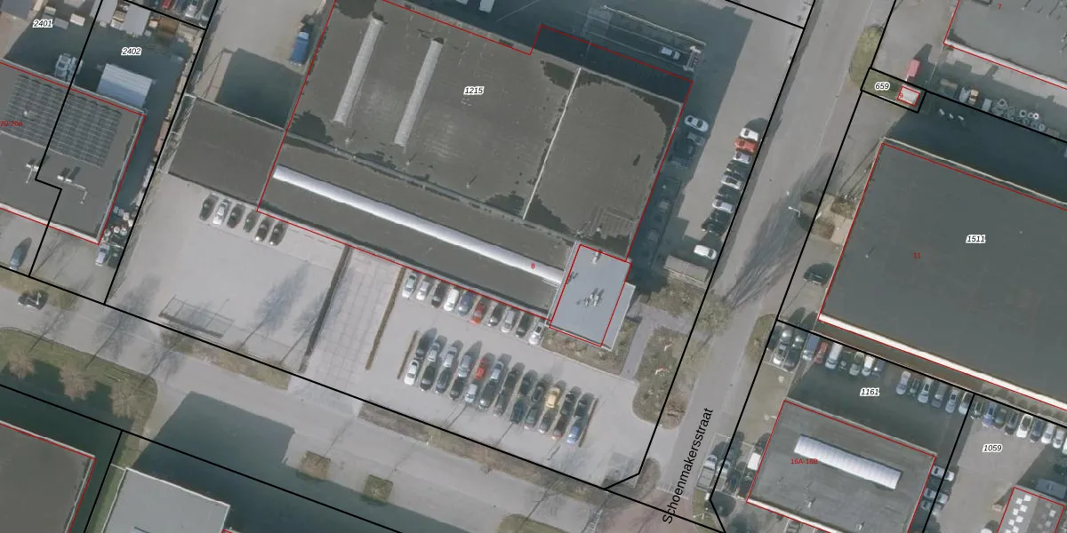 Schoenmakersstraat 8 is gelegen op kadastraal perceel SNE00E1215. Deze kadastrale aanduiding is uniek en wordt gebruikt door het Kadaster om eigendomsrechten en andere zakelijke rechten vast te leggen. Het perceel maakt onderdeel uit van de kadastrale gemeente Sneek.