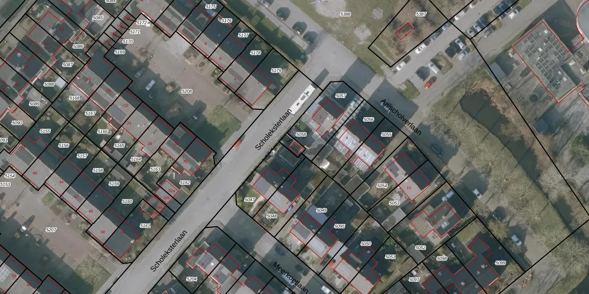 Scholeksterlaan 1 is gelegen op kadastraal perceel SNE00A5058. Deze kadastrale aanduiding is uniek en wordt gebruikt door het Kadaster om eigendomsrechten en andere zakelijke rechten vast te leggen. Het perceel maakt onderdeel uit van de kadastrale gemeente Sneek.