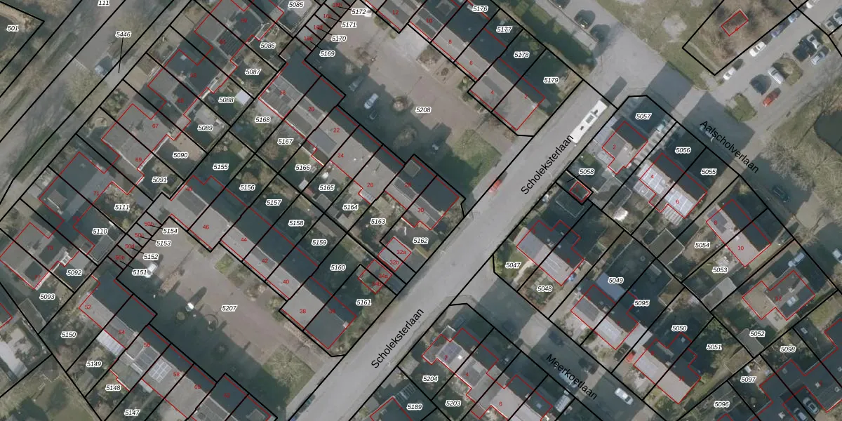 Scholeksterlaan 30 is gelegen op kadastraal perceel SNE00A5162. Deze kadastrale aanduiding is uniek en wordt gebruikt door het Kadaster om eigendomsrechten en andere zakelijke rechten vast te leggen. Het perceel maakt onderdeel uit van de kadastrale gemeente Sneek.