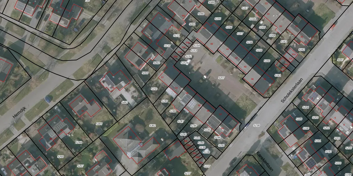 Scholeksterlaan 54 is gelegen op kadastraal perceel SNE00A5149. Deze kadastrale aanduiding is uniek en wordt gebruikt door het Kadaster om eigendomsrechten en andere zakelijke rechten vast te leggen. Het perceel maakt onderdeel uit van de kadastrale gemeente Sneek.