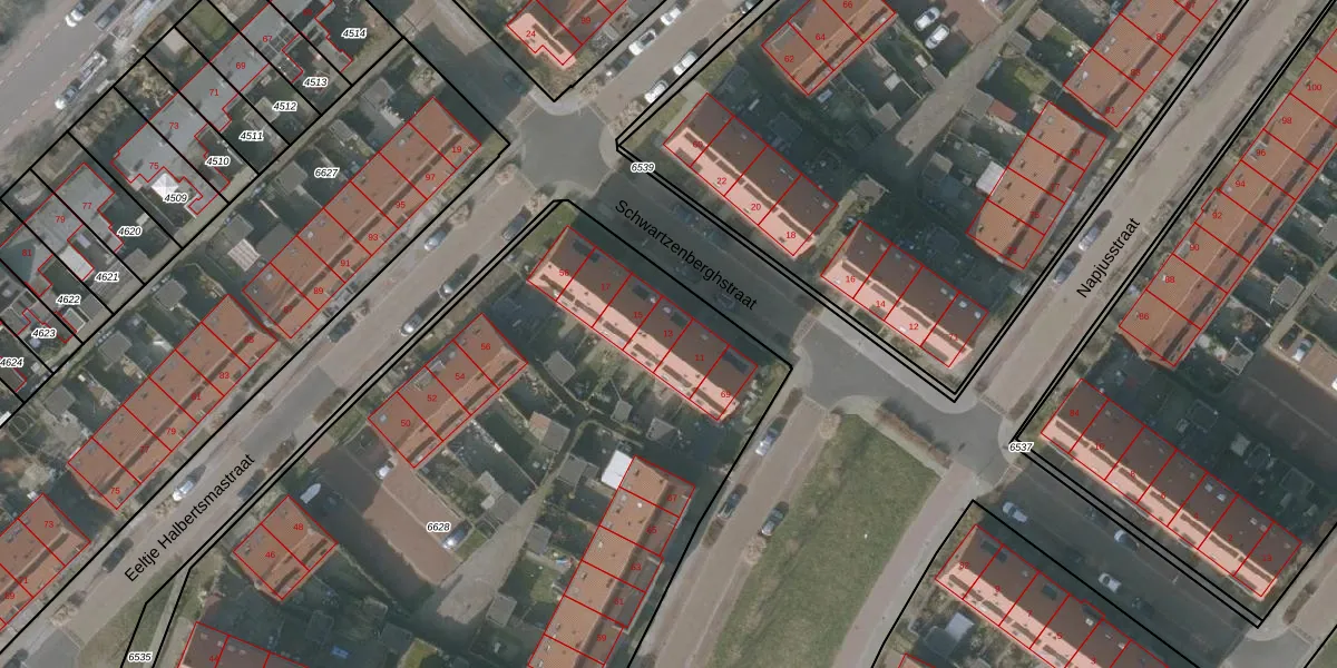 Schwartzenberghstraat 13 is gelegen op kadastraal perceel SNE00A6628. Deze kadastrale aanduiding is uniek en wordt gebruikt door het Kadaster om eigendomsrechten en andere zakelijke rechten vast te leggen. Het perceel maakt onderdeel uit van de kadastrale gemeente Sneek.
