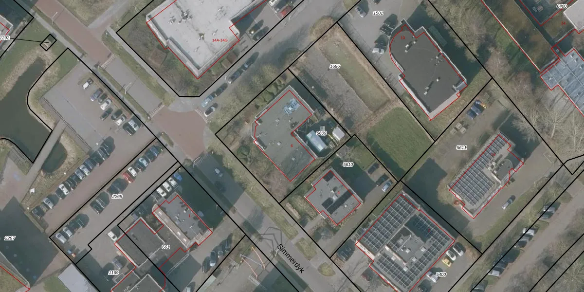 Simmerdyk 6 is gelegen op kadastraal perceel SNE00A5609. Deze kadastrale aanduiding is uniek en wordt gebruikt door het Kadaster om eigendomsrechten en andere zakelijke rechten vast te leggen. Het perceel maakt onderdeel uit van de kadastrale gemeente Sneek.