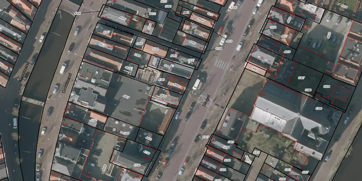 Het perceel waarop Singel 65 staat heeft een oppervlakte van 239 m². Dit is een middelgroot perceel. De perceeloppervlakte wordt geregistreerd door het Kadaster. Gedetailleerde informatie over de maten van dit perceel kunt u vinden in het rapport Kadastrale kaart met maatvoering van Singel 65.