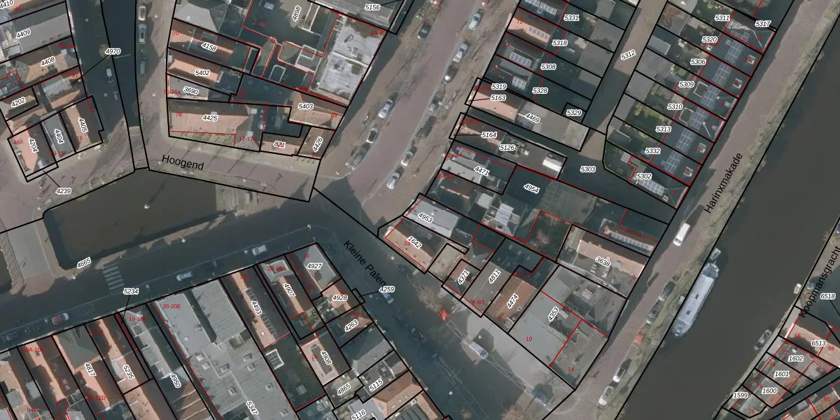 Het adres is gelegen op perceel 4953 in de sectie B en de kadastrale gemeente Sneek. De kadastrale aanduiding is aldus SNE00-B-4953. De gemiddelde perceelgrootte in Sneek is 2095,69 m². Dit perceel is kleiner: de perceeloppervlakte bedraagt 256 m². De grootste perceeloppervlakte in de kadastrale gemeente is 61,3 ha. De kleinste oppervlakte bedraagt 0 m². Op het perceel zijn 2 adressen aanwezig. De laatste wijziging in het de Basisregistratie Kadaster (BRK) was op 20-12-2005.